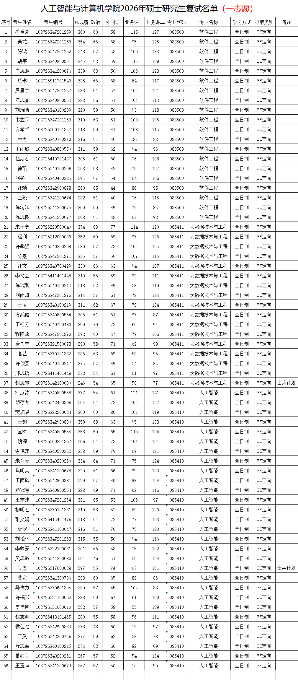 安庆师范大学人工智能与计算机学院 2026年硕士研究生复试名单(一志愿)