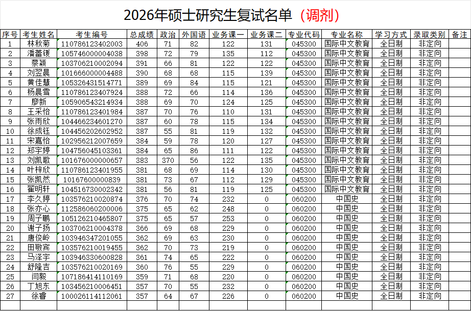 人文学院2026年研究生招生调剂复试名单