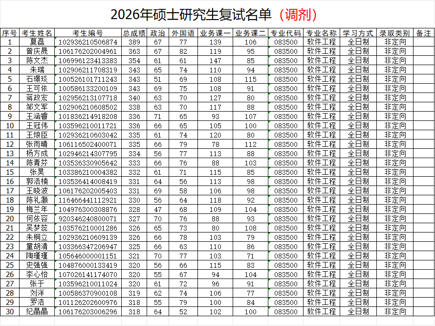 人工智能与计算机学院2026年研究生招生调剂复试名单