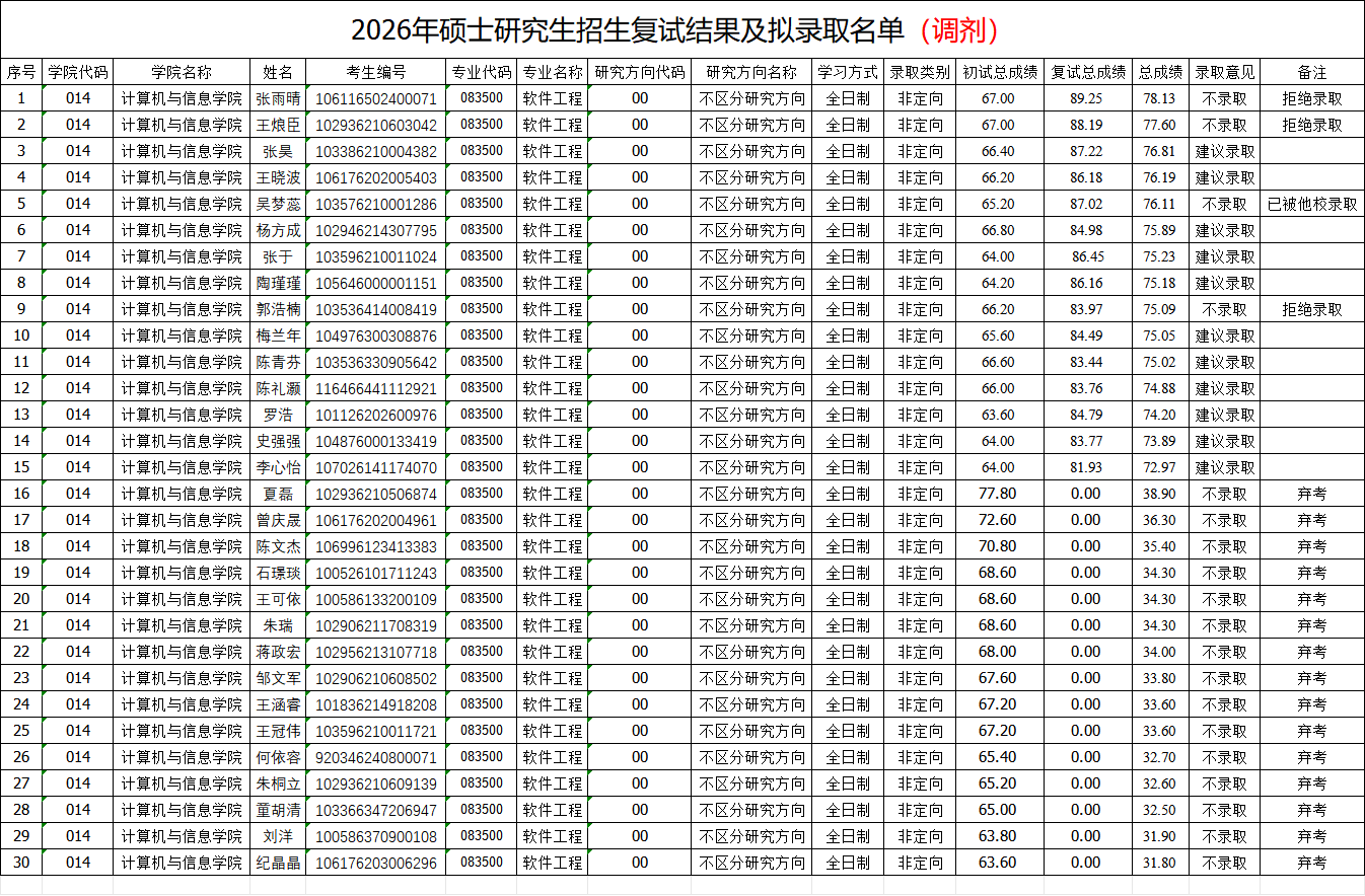 人工智能与计算机学院2026年研究生招生调剂复试拟录取名单