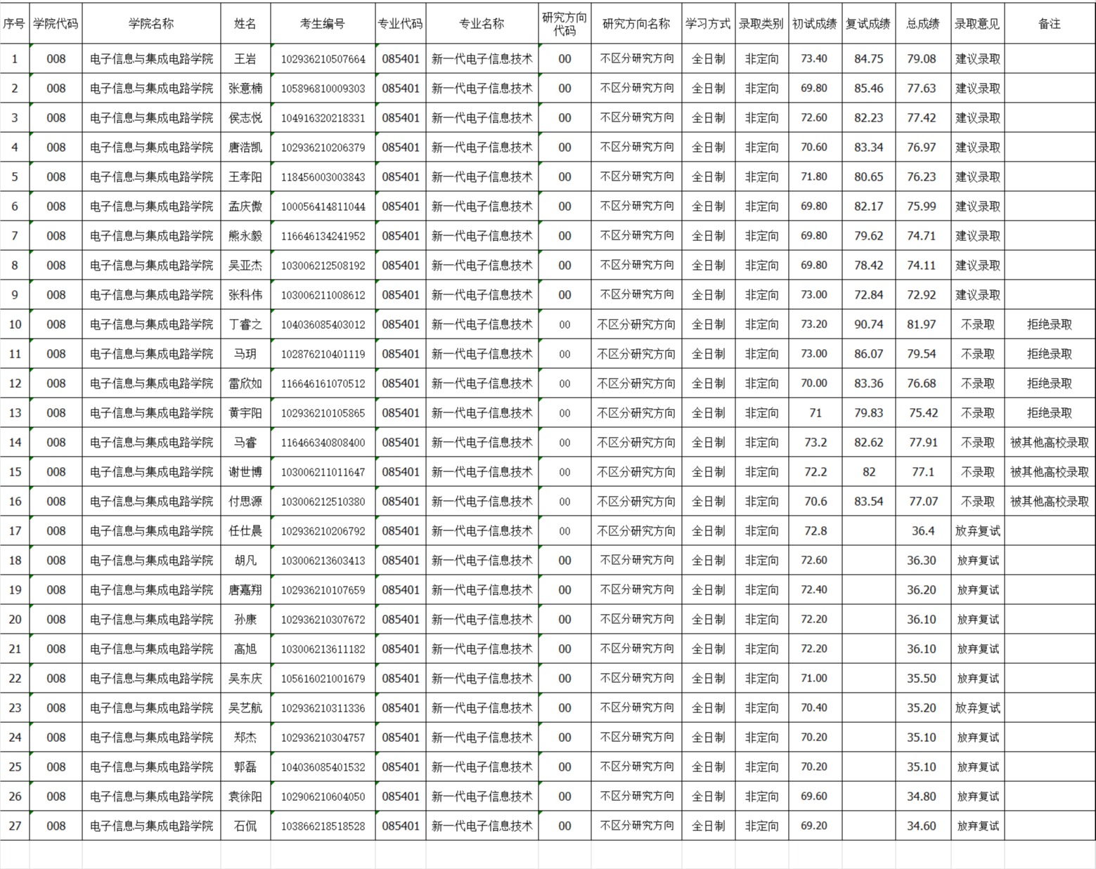 电子信息与集成电路学院2026年硕士研究生招生调剂复试拟录取名单