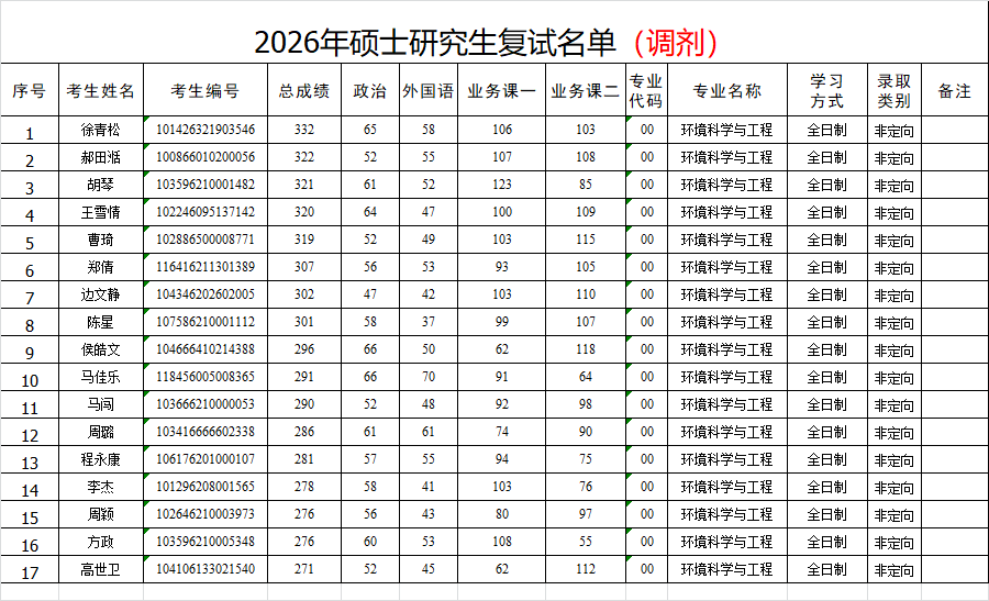 能源环境与空间信息工程学院2026年研究生招生调剂复试名单(第二轮)